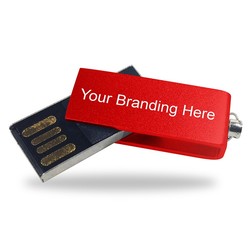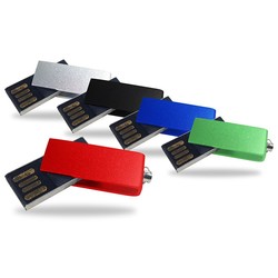 Stylish mini flash driveAvailable in many popular colorsClassy metallic finish makes this drive stand outMetal construction, swivel designAttach to keys or lanyard with the built-in ring50pc minimum order quantity>
