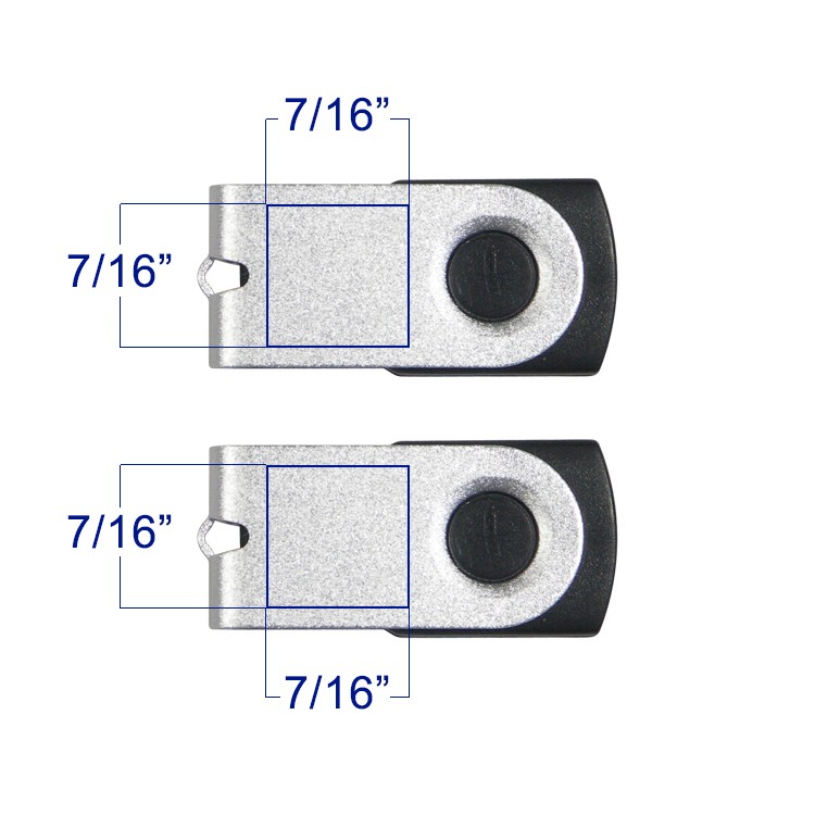 Mini swivel flash drive inspired by the very popular body style of the 7fmsAvailable in many colors as listed aboveNever lose another cap with the swivel featureStore huge amounts of data on a flash drive that is no bigger than a quarter50 piece minimum2.0 high speed data transfer