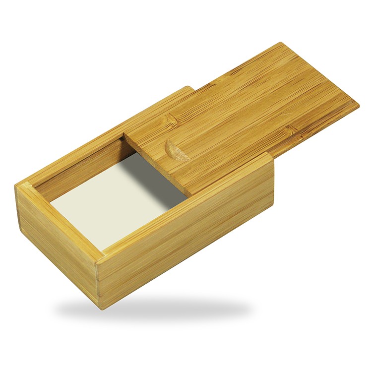 Slide the wood top to reveal contents insideFoam insert houses your branded drive nicelyLarge branding area on lidEnvironmentally friendly